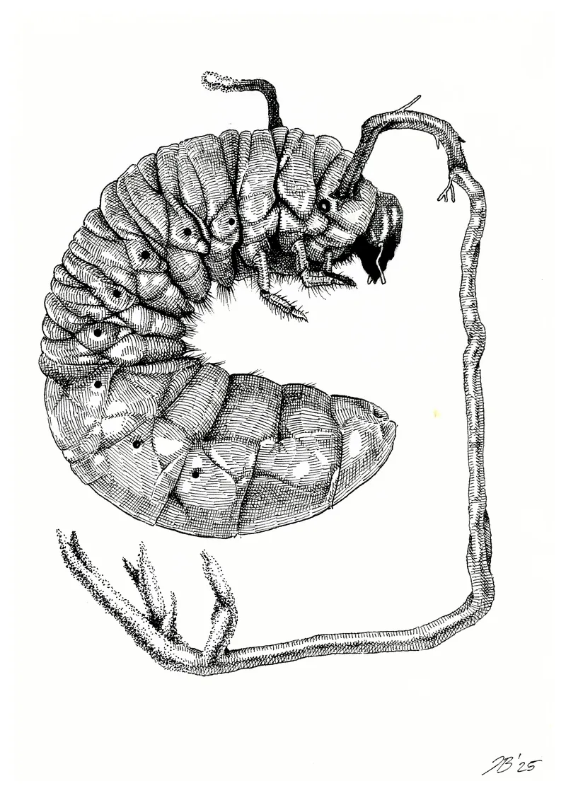 Rhino Beetle Larva with Metacordyceps, 2025 -